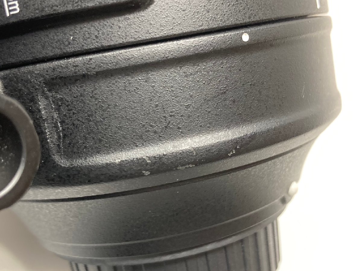 レンズ本体には使用に伴う傷やスレが見られ、外箱にも角スレが確認できました。そのため、状態のランクを慎重に判断しました。