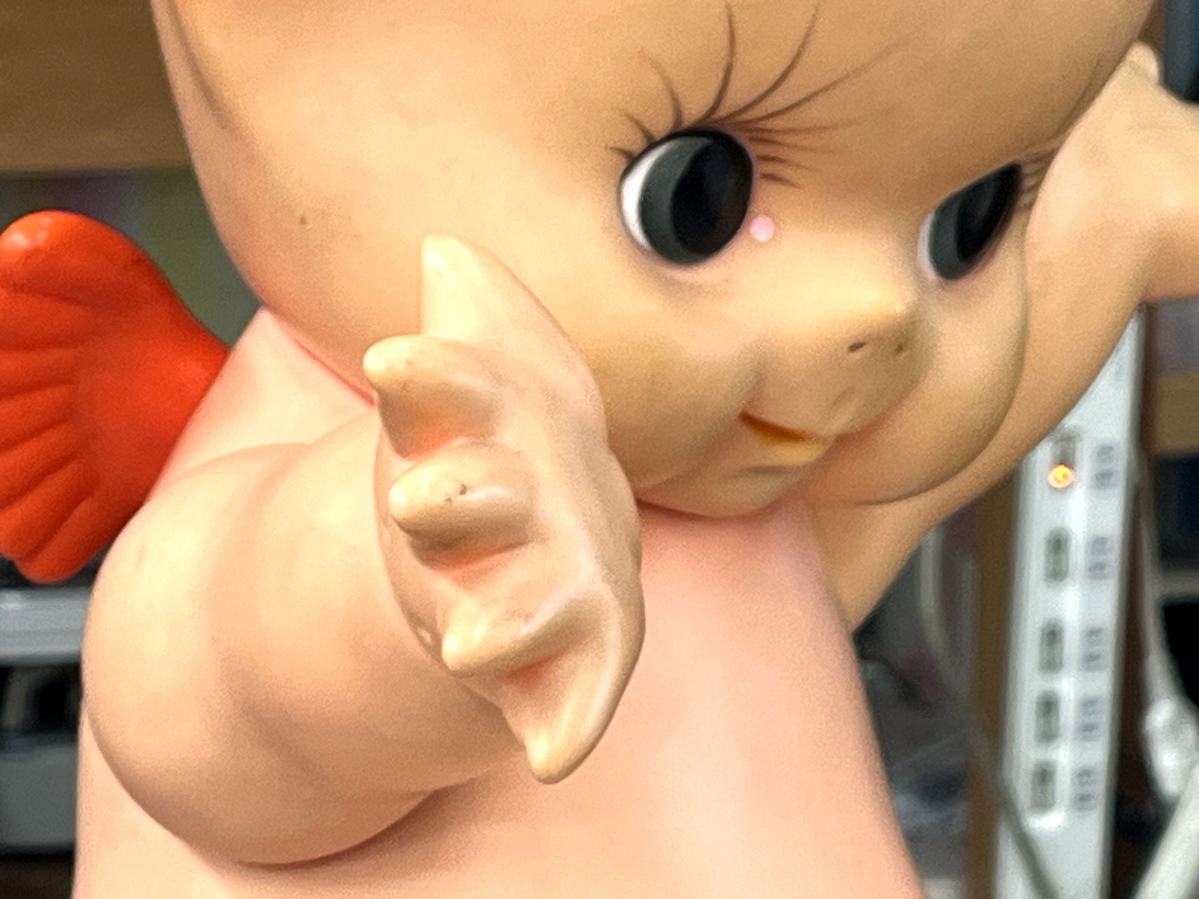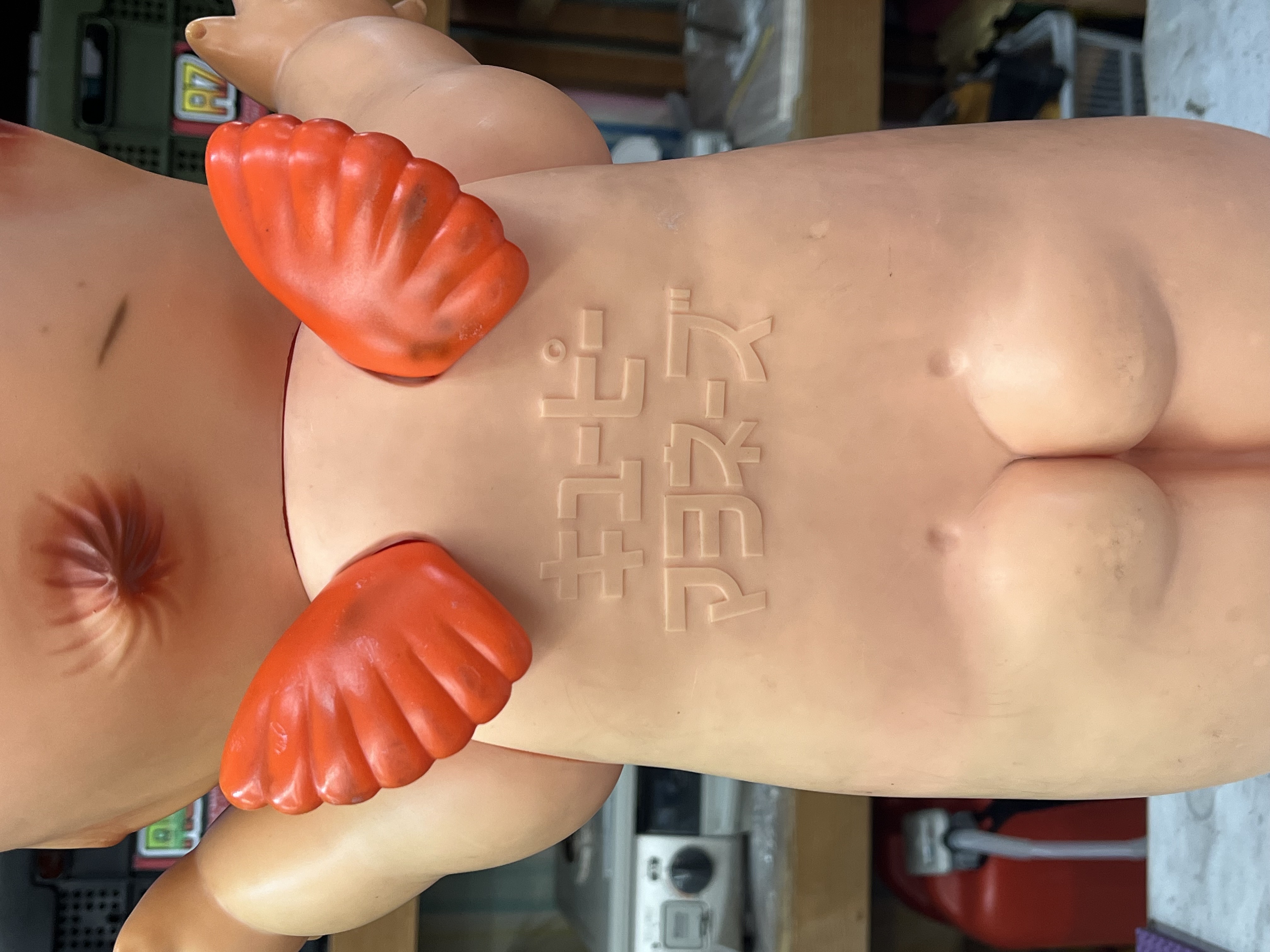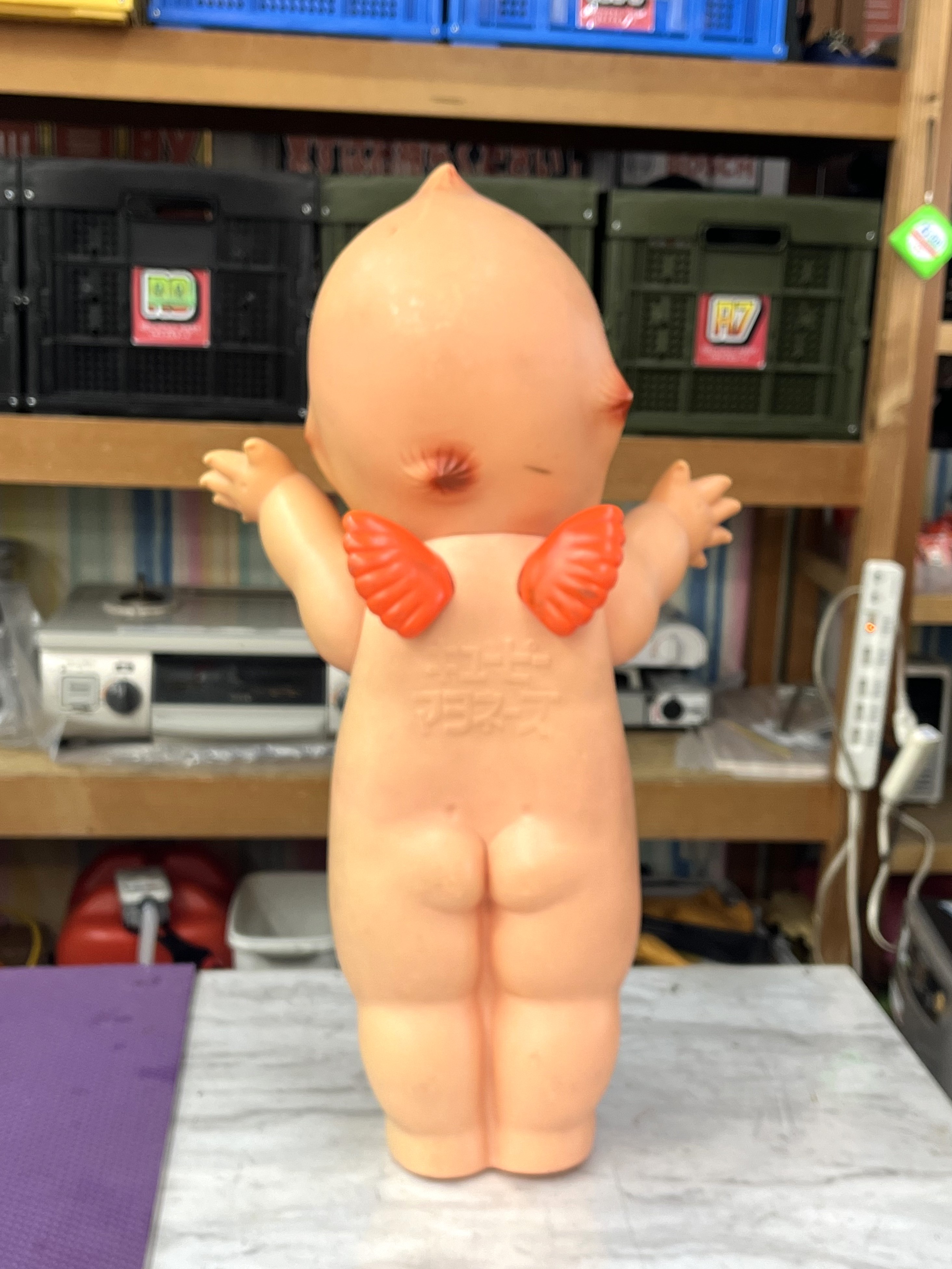 所々に擦り傷等が有り、日焼けの後も有りますがフォルムの状態も良く背中部分の小さな可愛い羽根部分が個性的でレトロなキューピー人形です。市場でも同型はまだまだ取引きされ需要があるのでお買取させて頂きました。