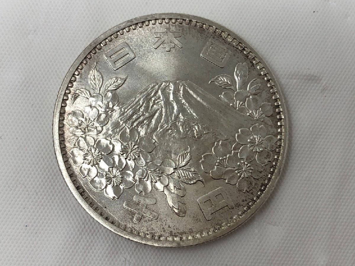 この記念硬貨は、日本で初めて発行された記念貨幣の一つとして知られており、1964年の東京オリンピック開催を記念して発行されました。表面には富士山と桜がデザインされており、日本らしい美しい意匠が特徴となっています。