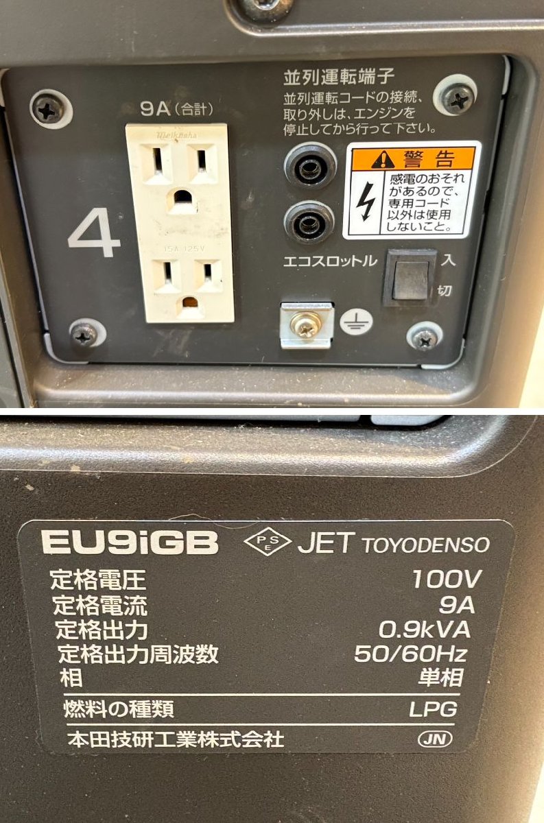 今回お買取させていただいたのは、ホンダのカセットボンベ式発電機「EU9iGB」です。